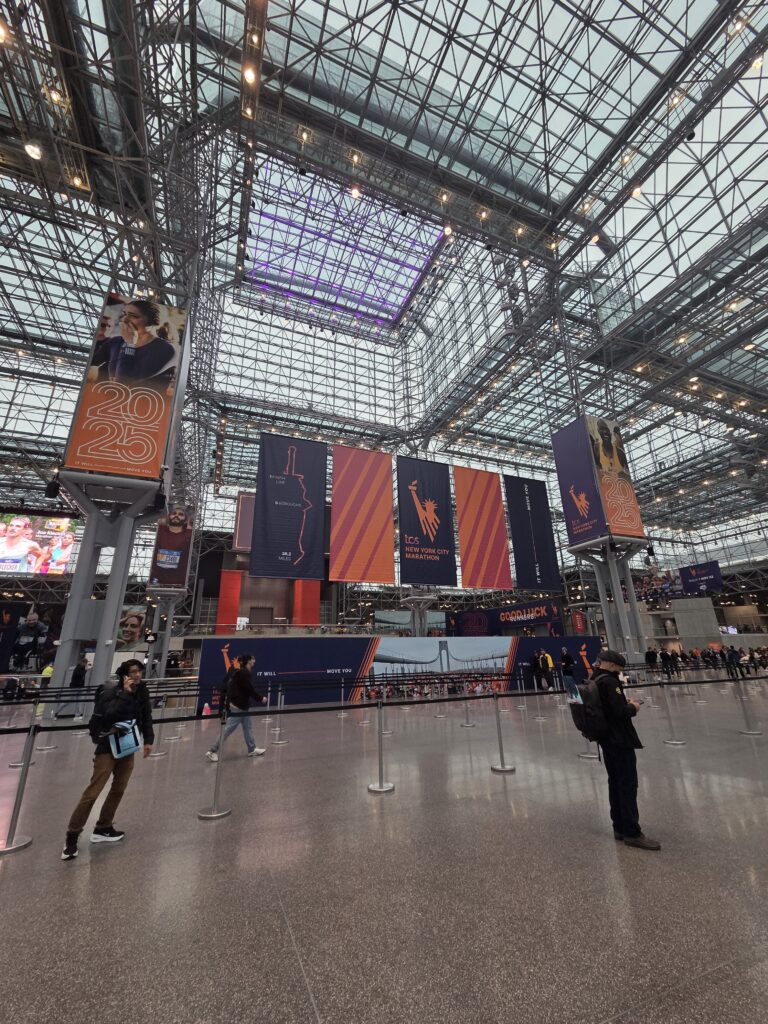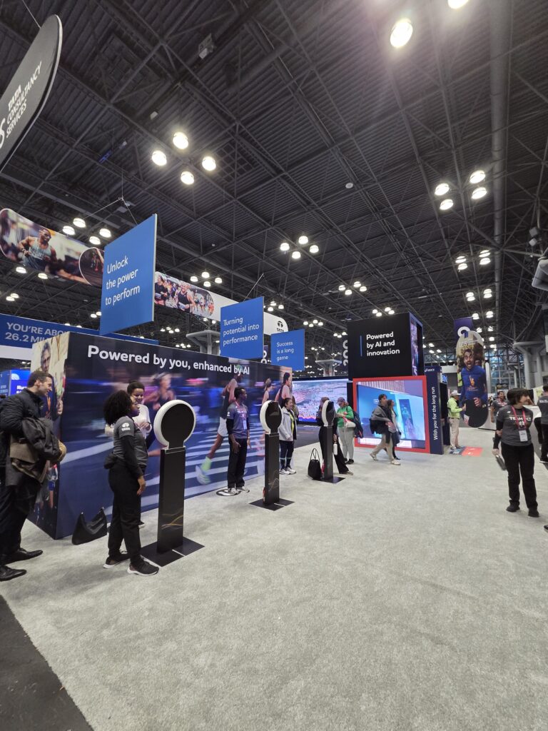 まず驚かされるのは、空間そのものの設計だ。天井高くまで自然光を取り込むガラス張りの構造が、屋内でありながらマンハッタンの空とつながるような開放感を生み出している。これは、ランナーが本番で体験する「都市を走る」という感覚を、無意識レベルで予兆させるUXデザインに他ならない。照明は単に明るいのではなく、柔らかく、各ブースのトーンは無機質なテクノロジーイベント(例えばCESのような)とは一線を画す。ランナーの心拍や高揚感と同調するかのような、温度感のある光と音響で空間全体が設計されている。