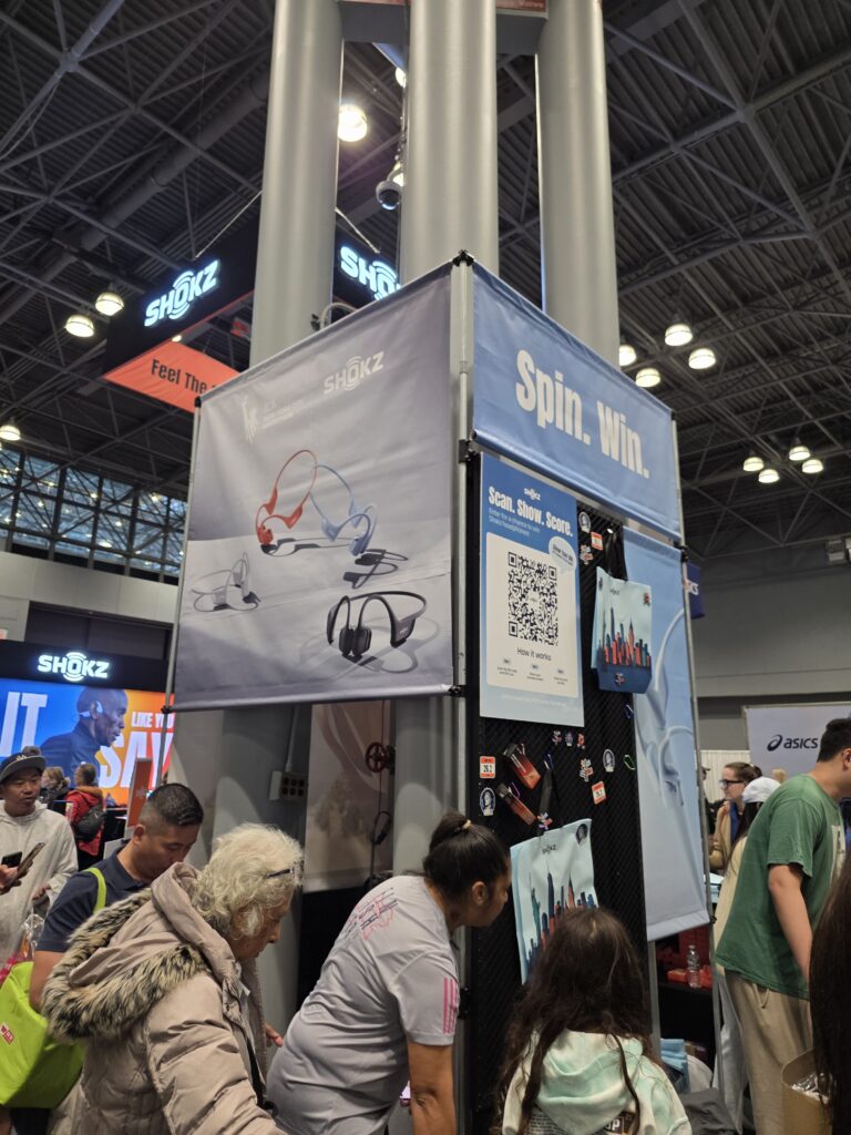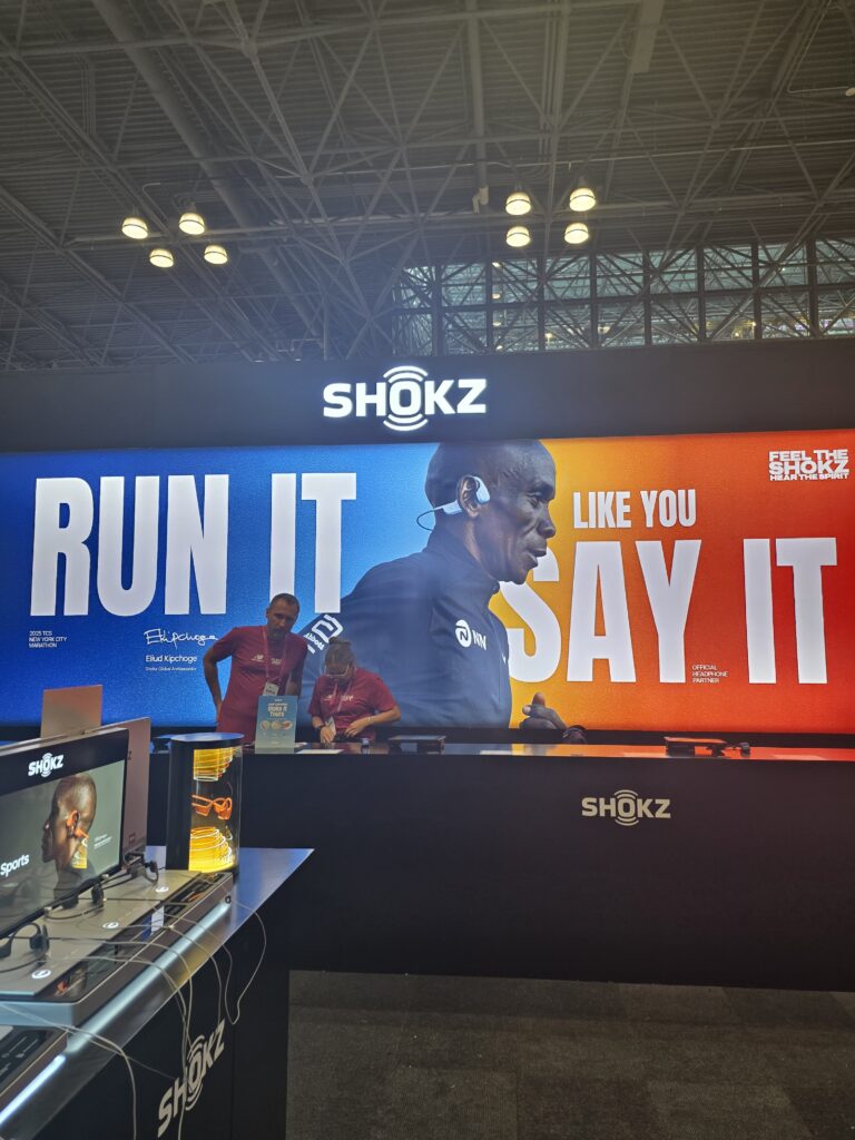Shokz(ショックス)の骨伝導イヤホン試聴エリアでは、都市ランニングのジレンマ(音楽による没入感と、外界音による安全確保のトレードオフ)を見事に解消する体験が提供されていた。マンハッタンの雑踏を模した騒音の中で、音楽と周囲の音の完璧なバランスを体感できる。「耳を塞がないこと」が、単なる機能的便益を超え、「都市からの自由」を象徴するように感じられた。
