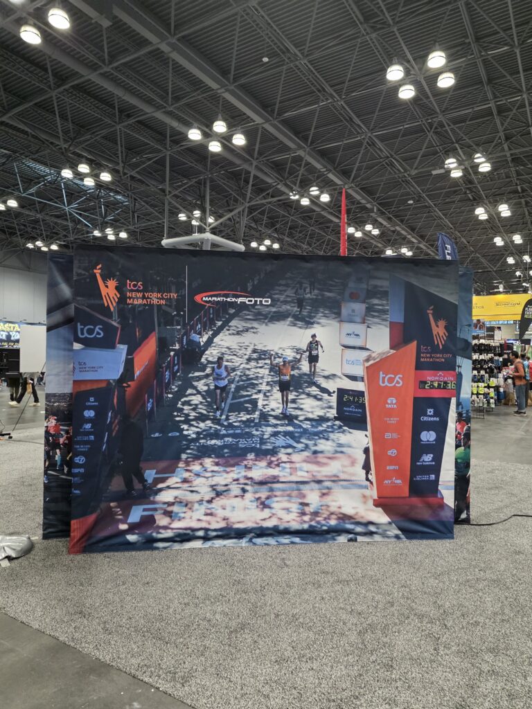 自分の名前と国名が表示されるボード。完走ゲートを模した巨大な「NEW YORK ROAD RUNNERS」のバックボード。アスリートの格言が書かれたメッセージウォール。各ブランドが用意した、プロの撮影スタジオのような“フォトランステージ”。