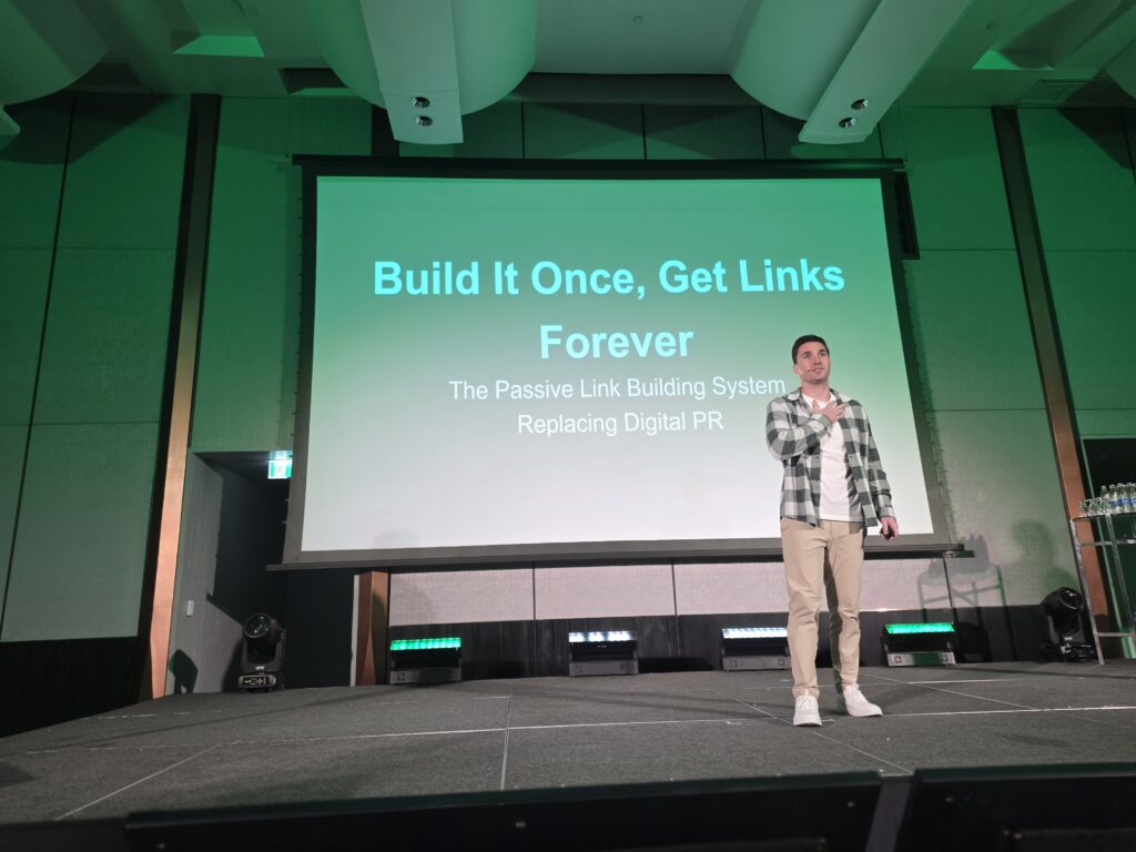 私たちが**事前のリサーチ(予習フェーズ)**で「従来のPR手法に批判的」と仮説を立てた通り、彼はセッションの冒頭で「リンクビルディングは“泥棒”だ」と断言した。
