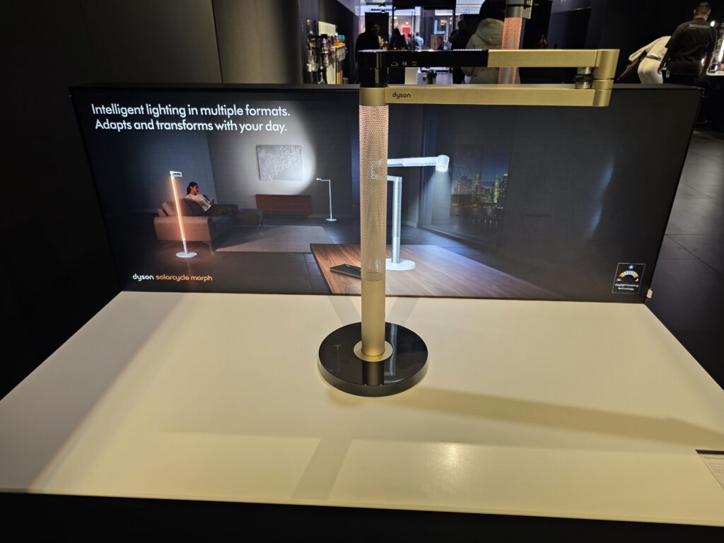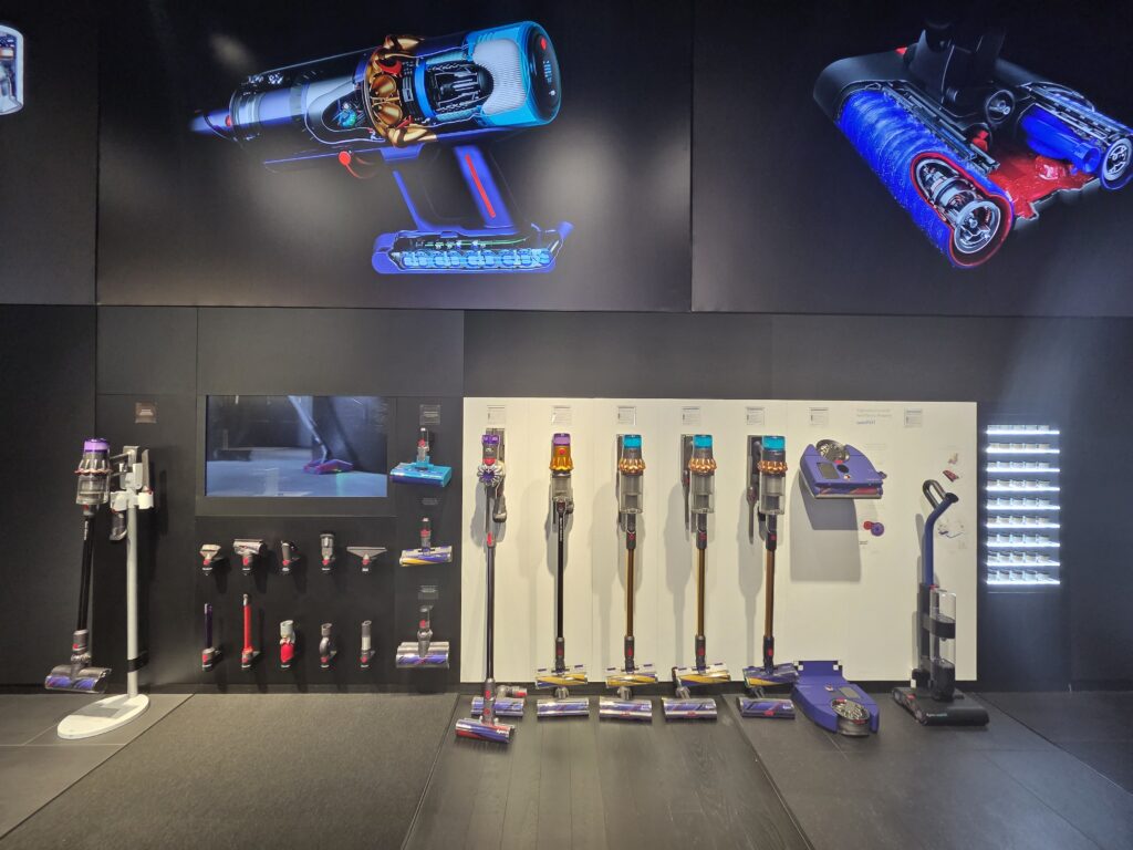 Dysonの空間は、その哲学、すなわち創業者ジェームズ・ダイソンが掲げる「Frustration(不快)の解決」という工学的執念を、五感全体で再翻訳する舞台装置となっている。 店舗全体で感じるのは、“機械が人間に無理を強いる”のではなく、“機械が人間の感性や生活に合わせてインテリジェントに変化する”という未来像だ。