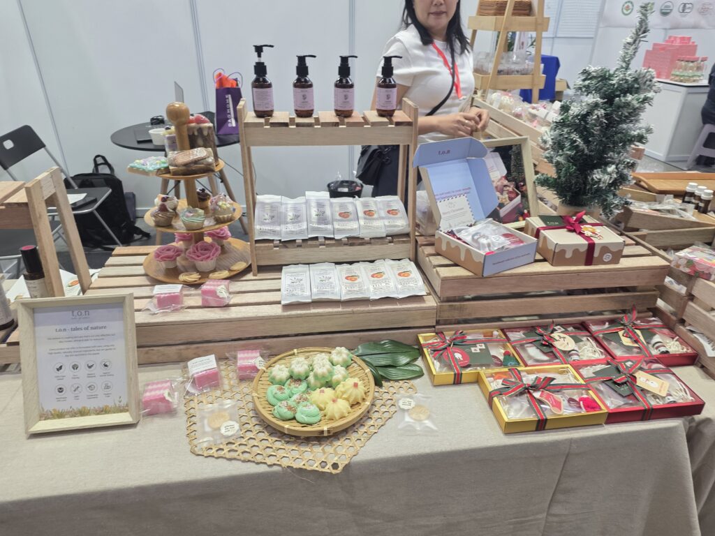 このブースは、天然素材を使った手作り石鹸とバスギフトを中心に展開する