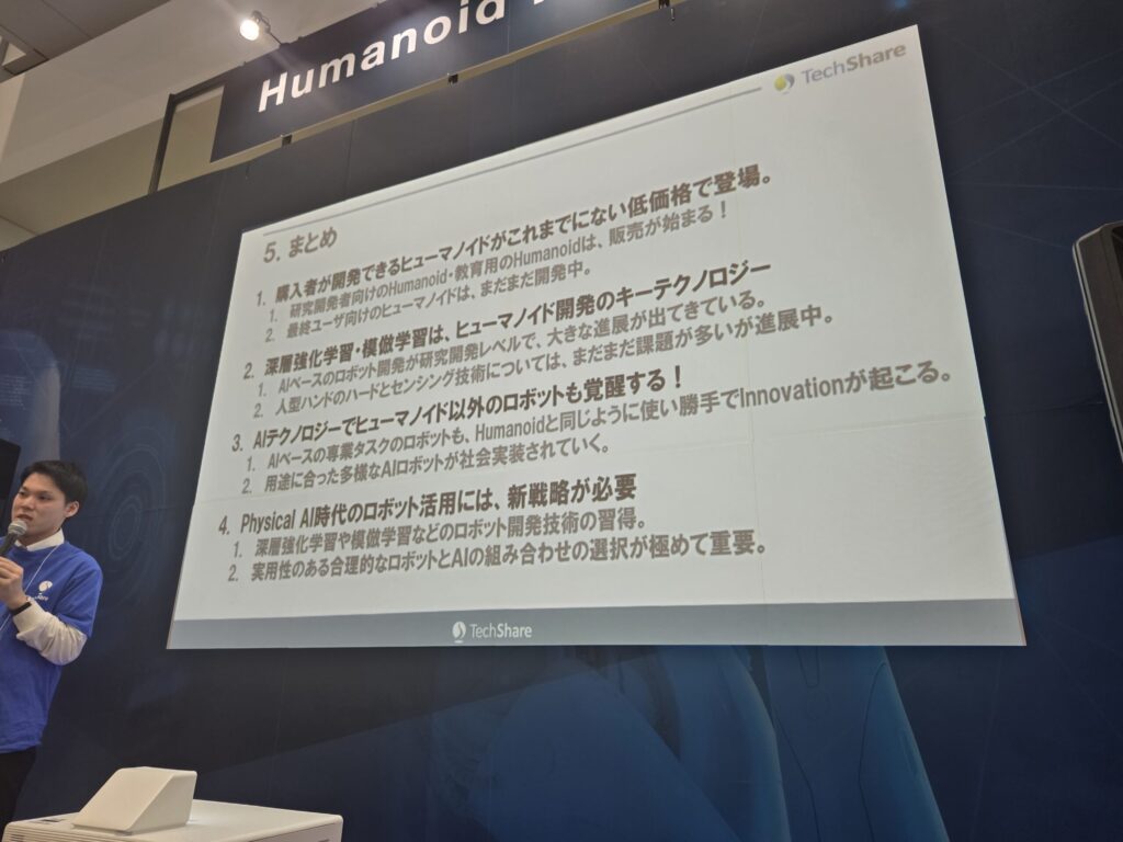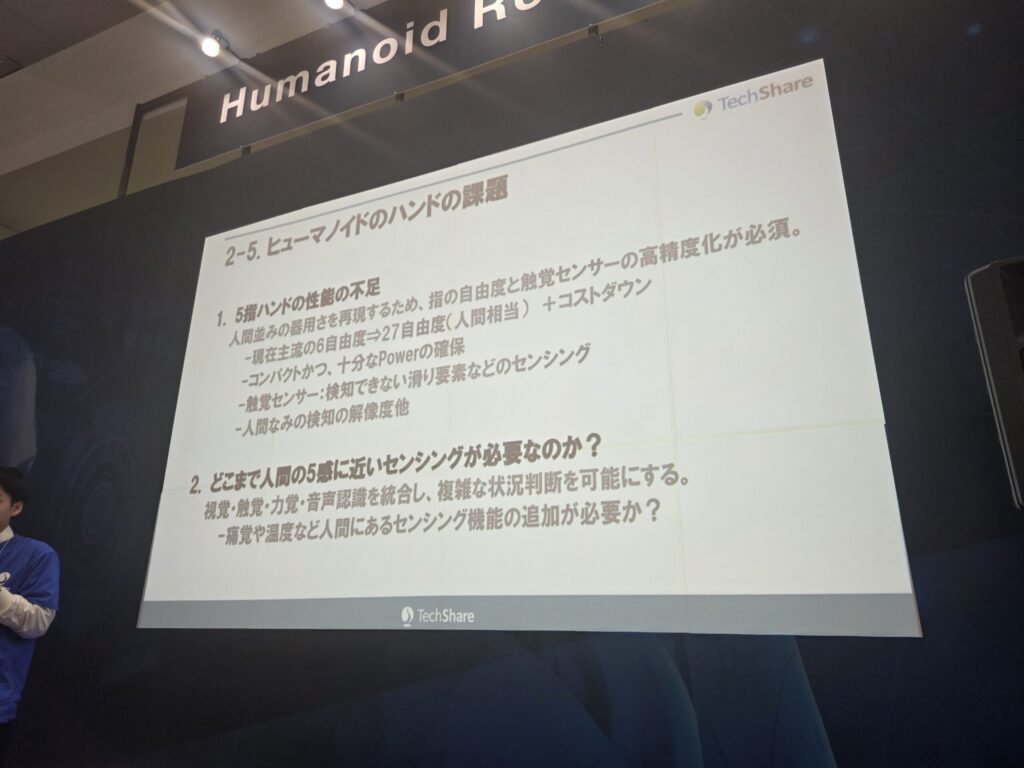 セミナーの終盤、登壇者はあえてトーンを落とし、ヒューマノイドロボットが抱える「現実的な課題」について、包み隠さず語り始めた。夢物語だけで終わらせない、代理店としての誠実な姿勢が垣間見えた瞬間だった。