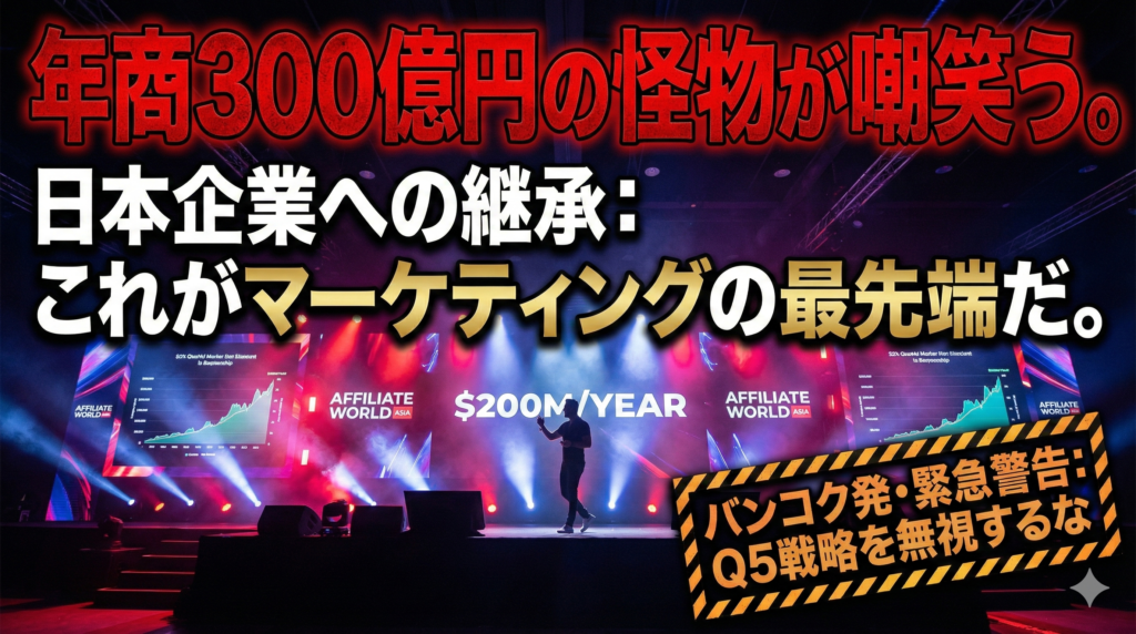 【0. プロローグ:バンコクからの警告「君たちの運用は、2013年で止まっている」】 熱帯の湿気と、世界中から集まったトップマーケターたちの殺気。 ここバンコクで開催された「Affiliate World Asia」のメインステージは、もはや単なるカンファレンス会場... -