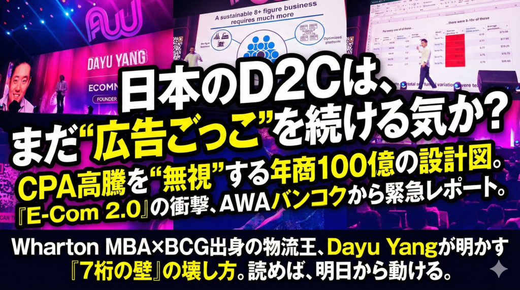 【AWAバンコク現地・完全統合版】年商10億の壁を突破する「E-Com 2.0」の正体。CPA高騰を無視する”物流と信頼”の全設計図