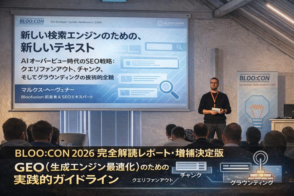 序章:コンテンツはまだ「王様」なのか? それとも「学習データ」に過ぎないのか? 2026年1月29日、BLOO:CON 2026(ドイツ・ケルン)。 午後のセッション(13:45〜14:30)に登壇したのは、Bloofusion創設者であり、20年以上にわたりSEO業界を牽引してきた... -