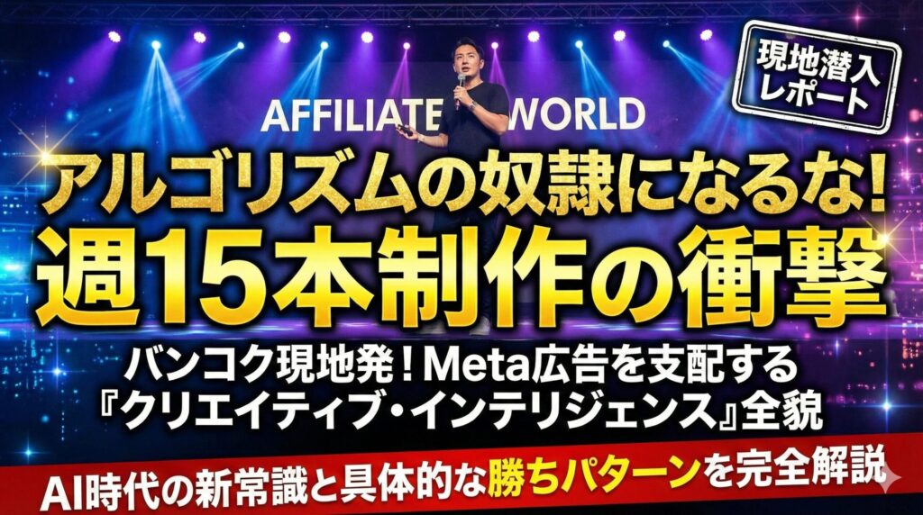 【0. プロローグ:バンコクからの警告「君たちの運用は、2013年で止まっている」】 熱帯の湿気と、世界中から集まったトップマーケターたちの殺気。 ここバンコクで開催された「Affiliate World Asia」のメインステージは、もはや単なるカンファレンス会場...